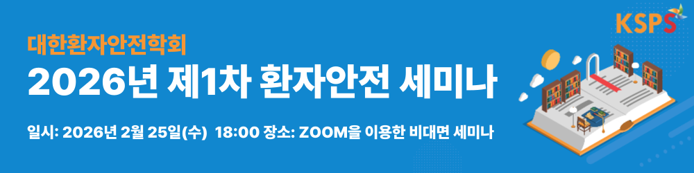 2026년 제1차 환자안전 세미나를 2월 25일 수요일 18시에 개최하오니, 회원 여러분들의 많은 관심과 참여를 부탁드립니다. 주 제: 환자안전: Safety I과 Safety II의 동행 발표자: 이상일 고문(대한환자안전학회)